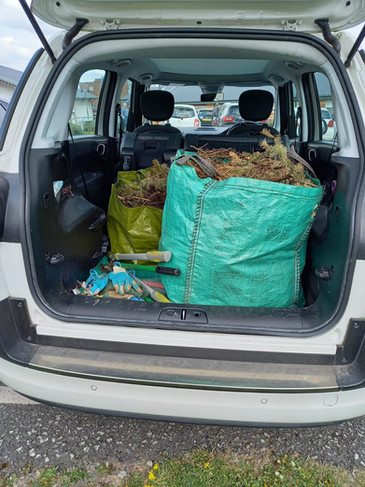 The Christmas tree didn’t survive the strong winds earlier in the year. So volunteers Pauline and Alan cut it down and took it to the tip to be turned into compost. We get asked what we normally do with the garden waste, such as weeds and pruning. We cant have our own compost bin for health and safety reasons. So we collect our unwanted garden waste and put it together in an area under the ivy. It becomes a temporary home for creepy crawlies, something that our local blackbirds have noticed. I often see them tossing things about to unearth what’s there to eat. This is collected each month by Tim who usually cuts our grass. All this gets taken for composting.
